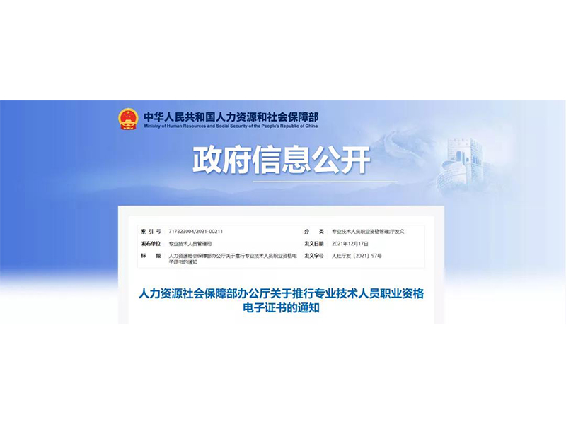 【通知】人力資源社會保障部辦公廳關(guān)于推行**技術(shù)人員職業(yè)資格電子證書的通知詳情>>